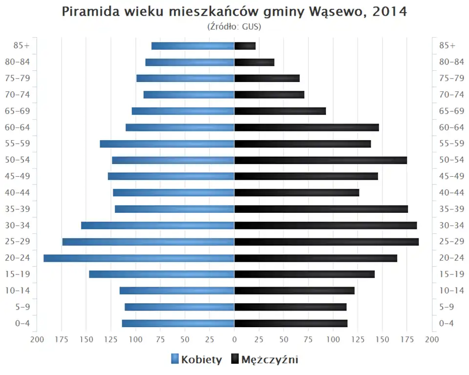 - Piramida wieku mieszkańców gminy Wąsewo w 2014 roku[12].