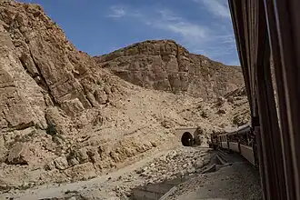 Linia kolejowa w wąwozie została wybudowana na początku XX wieku w celu transportowania urobku z kopalni. Na swój czas była dużym wyzwaniem inżynieryjnym. Obecnie linią tą jeździ pociąg turystyczny „Czerwona Jaszczurka” (fr. Lézard rouge). Skład jego stanowią historyczne salonki z pociągu beja Tunisu z 1910. Pociąg wyrusza z Al-Matlawi, jedzie przez wąwóz i wraca. Podróż trwa około 40 minut z kilkoma postojami po drodze.