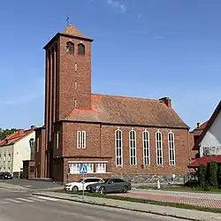 - Późnogotycki kościół św. Piotra i Pawła – z lat 1605–1611, powiększony o transept w 1729 r. i dobudowaną wieżę w połowie XVIII w., hełm z latarnią z 1826 r. Późnorenesansowe wyposażenie wnętrza, ołtarz główny i ambona z XVII w. Nad portalem wieży umieszczone są herby barona Fryderyka zu Dohna i Andrzeja von Kreutzena – fundatorów kościoła. Obok płyta nagrobna starosty Hansa von Auera, z 1659 r.;