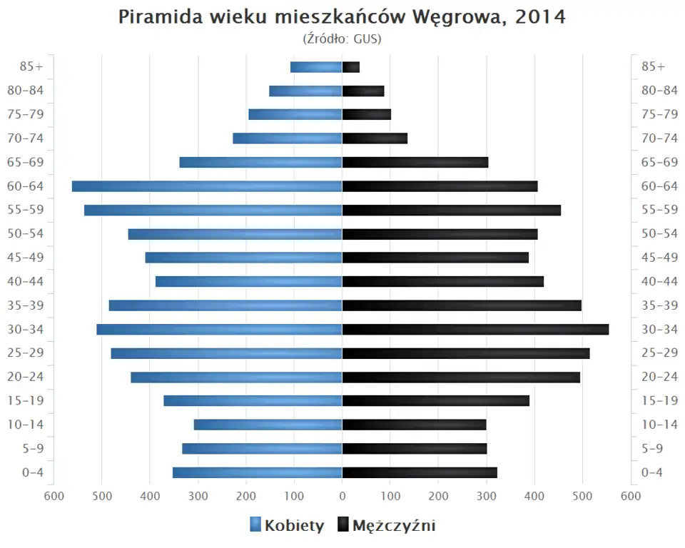 - Piramida wieku mieszkańców Węgrowa w 2014 roku[7].