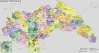 Podział administracyjny Węgier jest trzystopniowy. Obszar państwa jest podzielony na komitaty (megye; obecnie 19), które dzielą się na powiaty (dawniej járás, obecnie kistérség – 168), a te – na gminy (települései – miejskie város, obecnie 214, oraz wiejskie község i nagyközség, obecnie 2898). Rangę równą powiatom mają miasta na prawach komitatu (megyei jogú város, obecnie 23). Szczególny status, równy komitatowi, ma stołeczny Budapeszt (főváros), który dzieli się na dzielnice (kerület).
