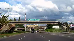 Przystanek tramwajowy pod węzłem. Na filarach widoczne murale | |