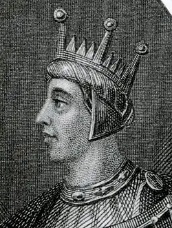 - ↑ Proklamowany królem w 1216 roku w londyńskiej Katedrze św. Pawła. Niekoronowany. Zrzekł się roszczeń do tronu 1217 roku. Późniejszy król Francji Ludwik VIII.