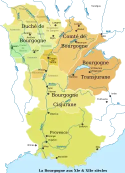 Po śmierci Lotara I w 855 wraz z podziałem jego ziem pomiędzy trzech synów, podzielona została również Burgundia.