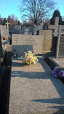 Spoczywa na cmentarzu Bródnowskim (kw. 72D, rząd 4, grób 20).