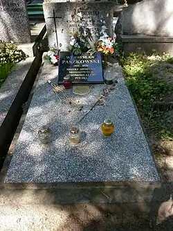 - ↑ Cmentarz Stare Powązki: ALOJZY PASZKOWSKI, [w:] Warszawskie Zabytkowe Pomniki Nagrobne [dostęp 2020-02-10].