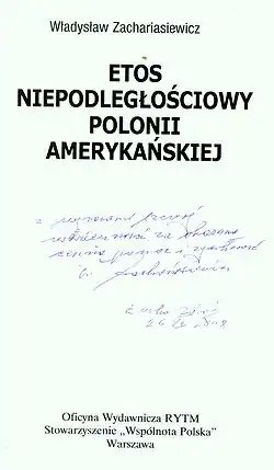 - ↑ Zmarł Władysław Zachariasiewicz, nestor polskiej emigracji w USA. radioem.pl, 2016-09-22. [dostęp 2016-09-22].