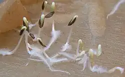 Specyficzną funkcję pełnią pierwsze włośniki pojawiające się u siewek. Rozwijają się one często jako długie i odporne na wysychanie wypustki, tworzące gęsty kołnierz u nasady korzenia pierwotnego. Pełnią one głównie funkcję stabilizującą siewkę w glebie, czasem pokryte są też substancją hydrofobową, co wyklucza korzystanie z roztworu glebowego[30].