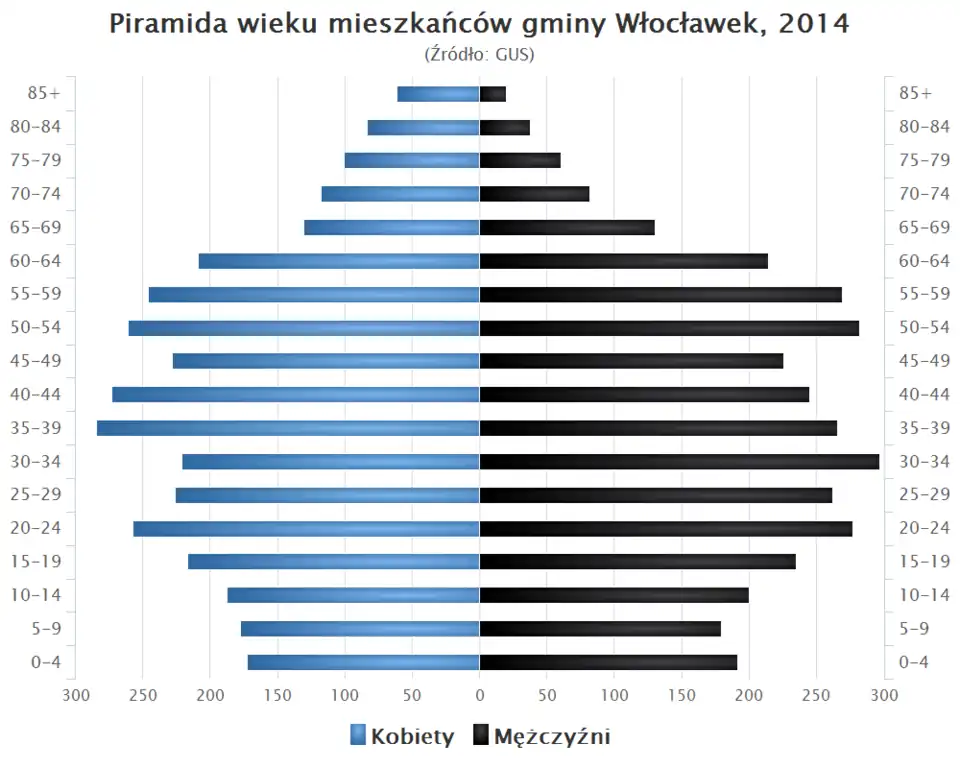 - Piramida wieku mieszkańców gminy Włocławek w 2014 roku[1].