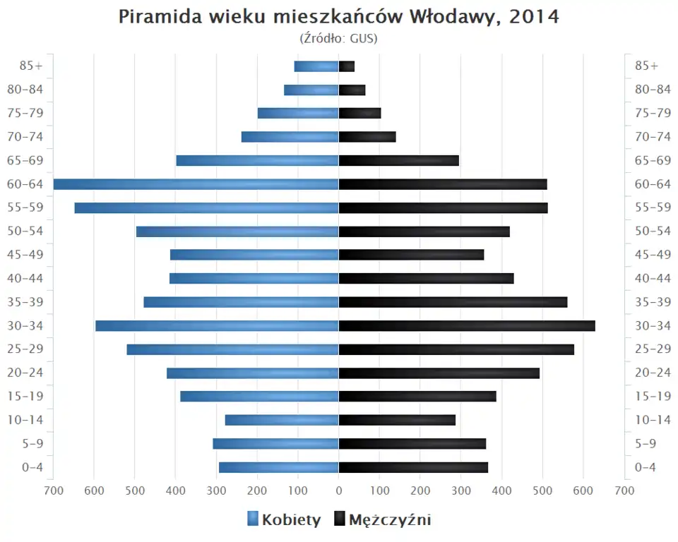 - Piramida wieku mieszkańców Włodawy w 2014 roku[48].