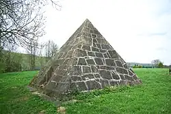- ↑ Wymiar boku i krawędzi bocznych wynosi 4,5 m, co faktycznie stanowi proporcję 1:51 wobec piramidy Cheopsa.