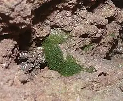 Plecha nitkowata, różniąca się od podobnych plech glonów i mszaków krótkimi komórkami, z bardzo licznymi, dyskowatymi chloroplastami oraz obecnością krótkich, jednokomórkowych, brązowych chwytników[7].