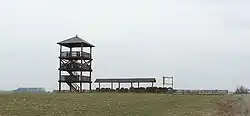 W czasie okupacji, w roku 1942, Niemcy wybudowali 70-metrową, drewnianą wieżę obserwacyjną. Spłonęła ona w roku 1956, po uderzeniu pioruna. Niedługo po tym zdarzeniu Wojsko Polskie wybudowało również drewnianą wieżę o wysokości 50 m. Później została ona zastąpiona 25-metrową konstrukcją metalową. Ta wieża została rozebrana w latach sześćdziesiątych.