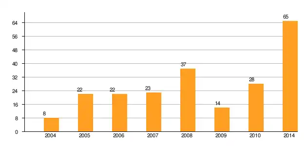 Liczba inwestorów, którzy zdecydowali się na inwestycje w WSSE w latach 2004–2014