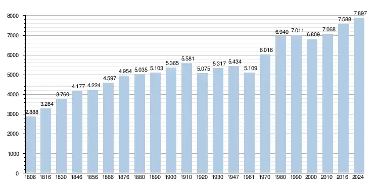 - Źródła: NIS, od 1806 do 1981= według spisu; od 1990 liczba ludności w dniu 1 stycznia