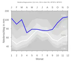 Średnia suma opadów dla Wadern wynosi 1114 mm. Najmniej opadów przypada na kwiecień, najwięcej zaś na grudzień.
