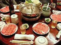 - ↑ Sukiyaki and Shabushabu. MAFF. [dostęp 2017-08-14]. (ang.).