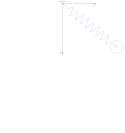 Oznaczenia: - długość spoczynkowa sprężyny, - rozciągnięcie lub skrócenie sprężyny od długości spoczynkowej, - kąt odchylenia wahadła od pionu.