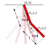 Wahadło podwójne utworzone jest z wahadła z doczepionym do jego końca drugim wahadłem. Ten prosty układ fizyczny wykazuje bogate zachowanie dynamiczne z silną wrażliwością na warunki początkowe, tzn. jest to układ chaotyczny. Ruch wahadła podwójnego opisuje się układem sprzężonych równań różniczkowych zwyczajnych.