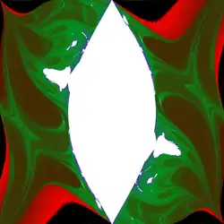 Kolor każdego piksela wskazuje ile razy dłuższy czas upłynął, by wahadło wykonało pełny obrót względem czasu minimalnego