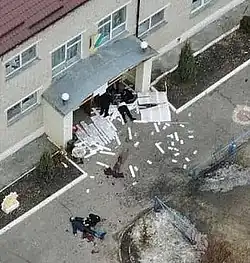 ![]() Ruiny budynku ochtyrskiej rady miejskiej zniszczonej w rosyjskim nocnym ostrzale rakietowym z 7 na 8 marca 2022 roku | |||