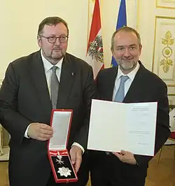 - 2001: Krzyż Honorowy za Zasługi dla Nauki i Sztuki Republiki Austrii[7]