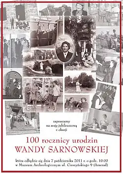 Z okazji 100-lecia urodzin doc. W. Sarnowskiej w dniu 7.10.2011 odbyła się sesja okolicznościowa w Muzeum Archeologicznym we Wrocławiu. W spotkaniu wzięli udział pracownicy Muzeum, byli uczniowie i współpracownicy doc. Sarnowskiej (min. prof. Włodzimierz Wojciechowski), profesorowie Polskiej Akademii Nauk oraz Instytutu Archeologii Uniwersytetu Wrocławskiego. Sesja została podzielona na kilka działów tematycznych: „Wanda Sarnowska jako muzealnik i pedagog” (odczyt K. Demidziuka), „Wanda Sarnowska – archeolog i badacz” (wystąpienie dr. K. Czerniaka), „Wanda Sarnowska – popularyzator wiedzy o ochronie zabytków” (T. Borkowski) oraz „Wanda Sarnowska – redaktor wydawnictw” (odczyt K. Ślipko-Jastrzębskiej).