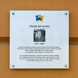 20 marca 2012 r. na fasadzie Pałacu Królewskiego we Wrocławiu odsłonięto tablicę pamiątkową poświęconą Wandzie Sarnowskiej.