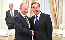 - ↑ Wang Yi: Counter-terrorism, Dialogue and Reconstruction Are Three Key Points for Solving Syrian Issue at New Stage [online], www.china-embassy.org [dostęp 2020-10-19].