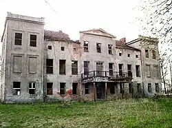 - Ruina pałacu – zbudowany ok. poł. XIX w. przez Juliusa von Osten w stylu neoklasycystycznym, murowany z cegły, 2-kondygnacyjny, rozbudowany o ryzality boczne i środkowy. W latach 1958–1983 siedziba szkoły podstawowej, następnie opuszczony.
