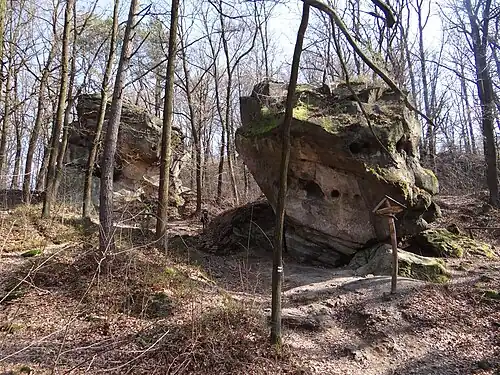 - ↑ Renata Stadnik, Anna Waśkowska. Skalne atrakcje polskich Karpat. Cz., II. Pogórza. Skamieniałe Miasto [online] [dostęp 2015-03-18] [zarchiwizowane z adresu 2014-12-22].