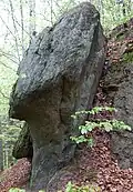 Skała znajduje się w pobliżu czarnego szlaku turystycznego z Przełęczy Kocierskiej do Targanic, na wierzchołku w odległości około 300 m od szlaku. Prowadzi do niej ścieżka z niebieskimi strzałkami. Zbudowana jest z litego piaskowca i uprawiany jest na niej bouldering. Jest 5 baldów o trudności od 4 do 7a w skali francuskiej. Start z pozycji siedzącej lub stojącej, lądowisko strome[2].