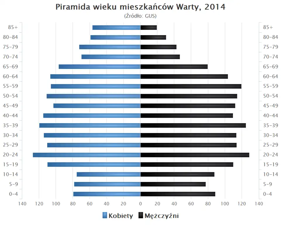 - Piramida wieku mieszkańców Warty w 2014[12].
