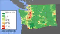 Obszar metropolitalny Seattle–Tacoma–Bellevue skupia ponad połowę ludności stanu, jest 15. co do wielkości w kraju i liczy blisko 4 miliony mieszkańców.