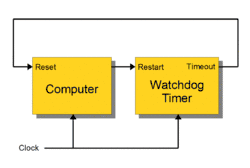 Watchdog jest układem czasowym oczekującym na potwierdzenie poprawnej pracy przez kontrolowane urządzenia, co określony przedział czasu. Brak potwierdzenia uważa za błąd i naprawia go najczęściej poprzez restart, rzadziej przerwanie od watchdoga lub chwilowe wyłączenie zasilania.