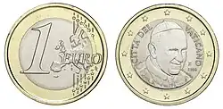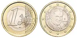 - ↑ Watykan nowy wzór obiegowych monet euro - Newsy numizmatyczne - Internetowy Katalog Monet [online], www.katalogmonet.pl [dostęp 2017-11-27] (pol.).