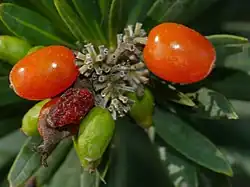 - Soczysta lub skórzasta jagoda, czasem otoczona pozostałościami trwałego kielicha, zwykle żółta lub czerwona[7]. Zawiera pojedyncze nasiono[8].