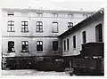ślub jednego z pracowników, zdjęcie na podwórku fabryki