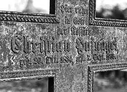 - W murze dawnego cmentarza przykościelnego zachowała się bramka cmentarna z XV wieku[3].