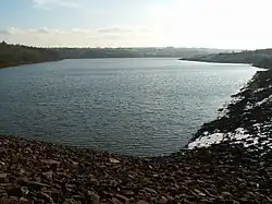 Zapora o wysokości 21 m znajduje się kilka km powyżej miejscowości Doły Biskupie. Budowę zbiornika rozpoczęto w 1980 r., a ukończono w 2005 r. W trakcie budowy zbiornika zostało zlikwidowanych 101 gospodarstw, 3 młyny wodne oraz 2 szkoły. Wycięto także 8,7 ha sadów i 40 ha lasów. Na jego terenie wcześniej eksploatowano czerwone i brunatne skały osadowe wczesnego triasu (pstry piaskowiec)[1]. Koszt budowy zbiornika szacowany jest na około 300 milionów zł.