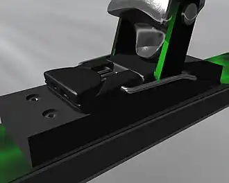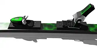 Mechanizm bezpieczeństwa stosowany w wiązaniach jest zwykle oparty na działaniu regulowanej sprężyny, która przy odpowiednio dużej sile odkształca się uwalniając but narciarski. Istnieje wiele rozwiązań technicznych tego urządzenia. Niektóre modele posiadają obrotową część przednią i tylną, które w niebezpiecznych sytuacjach obracają się na bok uwalniając but, inne działają w kierunku pionowym, odczepiając but poprzez zwolnienie zaczepu do góry.