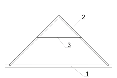 Szczegół połączenia jętki (3) z krokwią (2) - pokazano jak w rozwiązaniu tradycyjnym - na jaskółczy ogon: