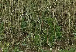 - uszkodzenie korzeni lub podstawy źdźbła przez niektóre grzyby (np. Gaeumannomyces graminis), czy bakterie (Plasmodiophora brassicae)