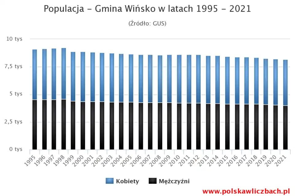 - Populacja mieszkańców gminy Wińsko w latach 1995-2021 roku[1].