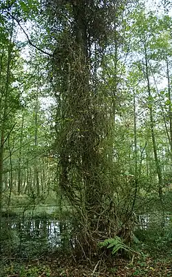 Z kolei wiciokrzewy ciasno oplatając drzewa i krzewy ograniczają ich przyrost pni na grubość i w efekcie często powodują ich deformację[30].