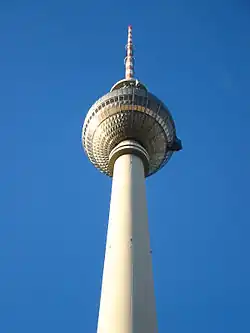 - ↑ Wieże te są wysokości od 40 do ponad 60 metrów wysokości; trzon wież to betonowa klatka schodowa 10-13-piętrowa, na górze znajduje się taras, na nim zamontowane są różnej konstrukcji maszty dodatkowe z antenami przekaźnikami różnej wielkości i mocy przesyłu. Niektóre wieże są obudowane, więc oprócz klatki schodowej są pomieszczenia, ale też są takie jak w Trzcińsku koło Starogardu Gdańskiego, gdzie cała wieża to wielka klatka schodowa z otwartymi tarasami na każdym piętrze.