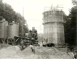 Pozwolenie na budowę zostało wydane 9 czerwca 1954. Dzień później, o godzinie 15 Fritz Eberhard symbolicznie wbił pierwszą łopatę. W kolejnych dniach z użyciem koparek wykonano głęboki na 8,4 metra wykop o średnicy 30 metrów na fundamenty[9]. Wcześniejsze analizy geologiczne wykazały dużą stabilność podłoża, składającego się z gliny łupkowej z warstwami wapienia i wykluczały jednostronne zapadanie się gruntu. Pozwoliło to na rezygnację z kosztownych pras poziomujących[10]. Napływ wody do wykopu negatywnie wpłynął na stabilność podłoża, więc wykopano rowy odwadniające i wypompowywano zbierającą się wodę. Ostatnie 15 centymetrów głębokości wykopów przeprowadzono po zadaszeniu terenu, co gwarantowało nienamakanie gruntu. Podstawę z fundamentami wybudowano do ok. 60-70 cm ponad poziom gruntu[11].