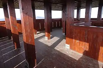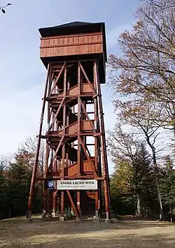 Budowę wieży widokowej sfinansowała Gmina Łącko przy współudziale środków Unii Europejskiej. Jej koszt wyniósł 715 598 zł, w tym dofinansowanie z UE 234 902 zł[5]. Jest to wieża o konstrukcji drewnianej i wysokości 27 m. Taras widokowy znajduje się na wysokości 20,7 m nad ziemią. Obudowane schody wejściowe umożliwiają wejście na nią nawet osobom z lękiem wysokości, a zadaszenie schodów i platformy widokowej umożliwia korzystanie z wieży również przy złej pogodzie. Co 8 stopni znajduje się pomost spoczynkowy. Łącznie jest 138 stopni. Na platformie nie powinno przebywać więcej niż 25 osób[1]