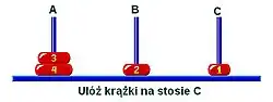 - Niech będzie liczbą krążków, które chcemy przenieść ze słupka A na słupek C posługując się słupkiem B jako buforem.