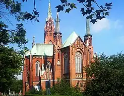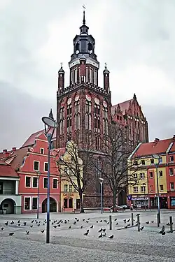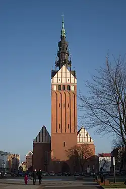 - ↑ Powstawała od 1340 roku, konsekrowana w 1411 roku, jako wotum w rocznicę zwycięstwa pod Grunwaldem. Sama budowa trwała do 1526 roku. W latach 1883–1901 budynek rewitalizowano, z wymianą detali i podwyższeniem wież zachodnich – ze strzelistymi hełmami w stylu neogotyckim.